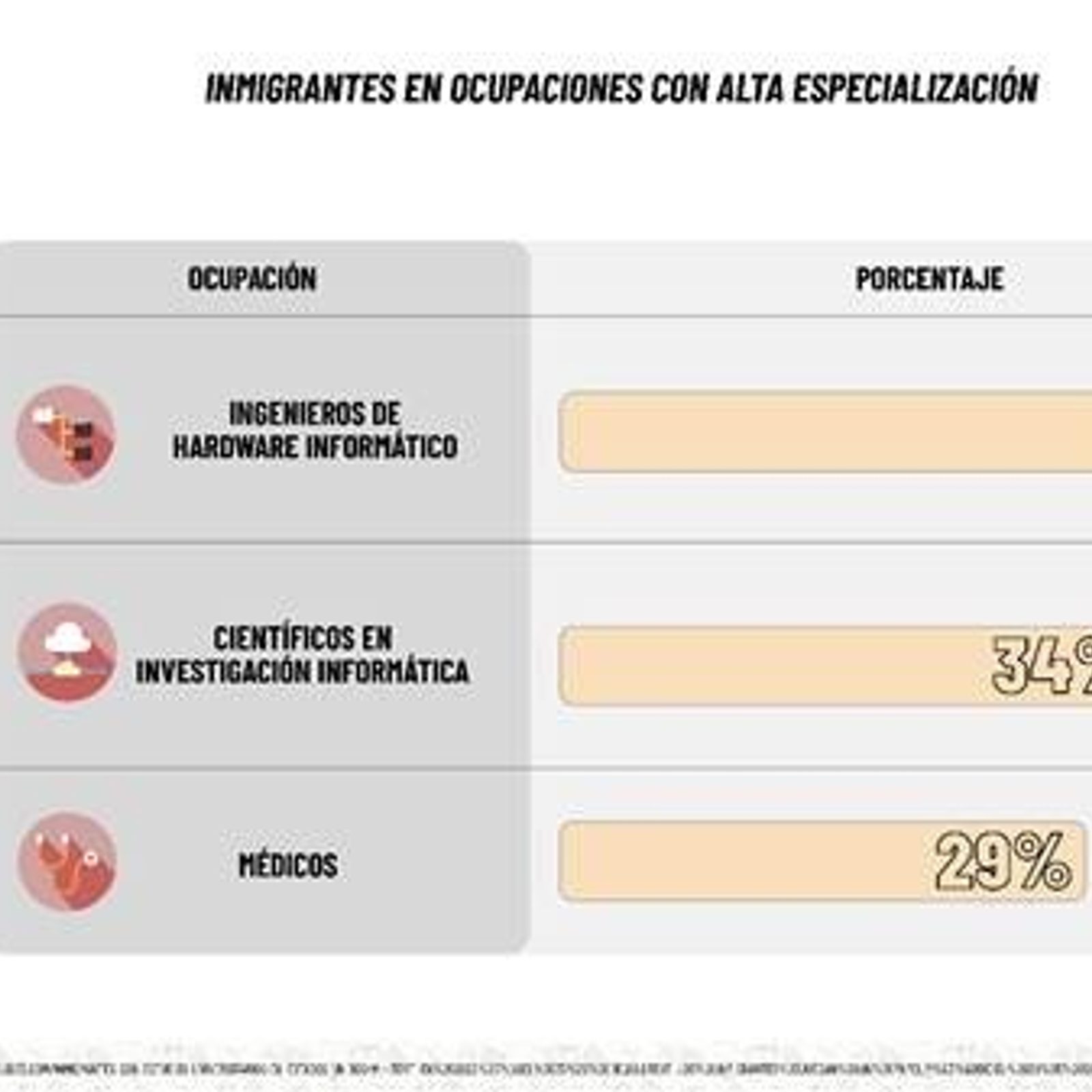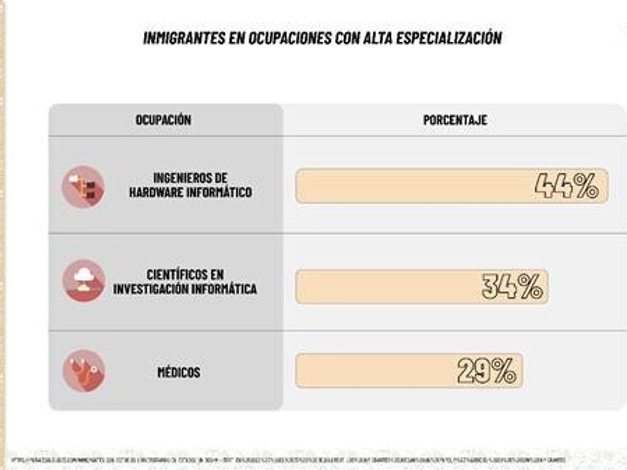 Ocupaciones en ingeniería informática, investigación científica y medicina muestran una alta presencia de inmigrantes. Sin embargo, solo una fracción logra ejercer plenamente en esos campos.